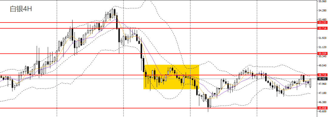白银昨日收十字星,5日、10日均线关口,短线趋势从头转多,多单可持续持有,后市有望上探48.70。