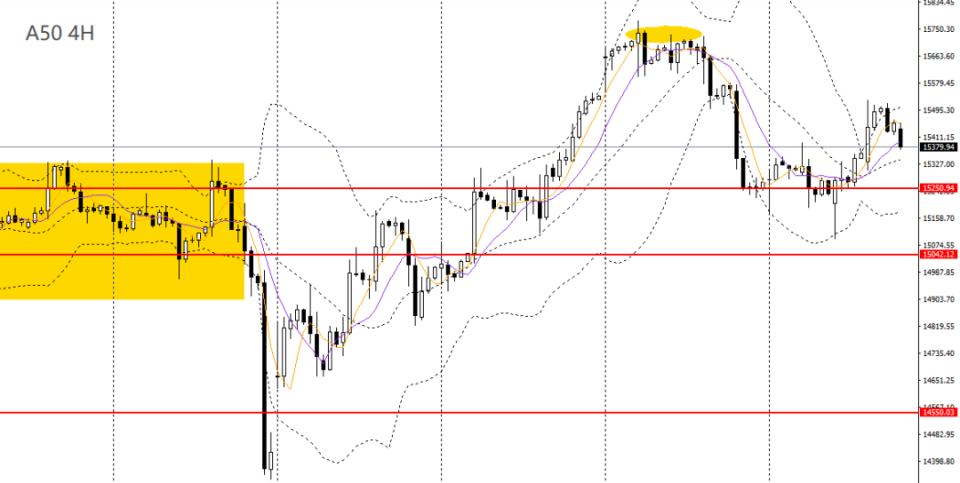 A50持续走高,日线一线遇阻,多头动能削弱,如无法正式升破,多单主张离场,稳健者可暂时张望。